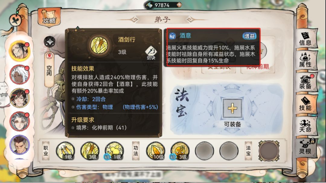 第二天就算是50次保底大家也应该抽到了李清圣这位输出弟子,有些欧皇小伙伴甚至已经抽到第二个秦冰了呢!首推李清圣的原因是其高暴击的爆炸输出能力,天命自带暴击加成,释放大招还拥有额外20%暴击概率,【酒意】状态下拥有着高额的剑诀技能威力、攻击力以及暴击伤害的加成,所以李清圣也可以搭配剑诀功法。无论前期还是后期都是输出能力担当。