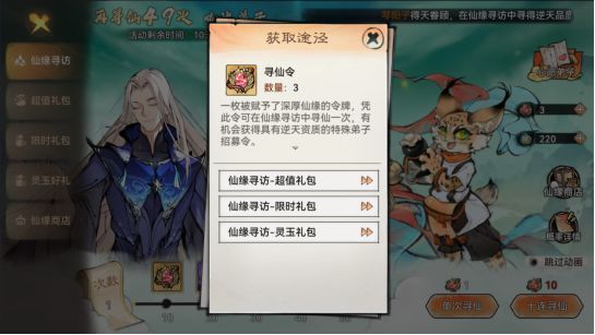(1)寻仙令:游戏里有很多仙缘弟子,个个好看又好用,说不想要是假的,每次的仙缘弟子活动都可以在对应的灵玉商店用灵玉购买寻仙令。(个人建议月卡党积攒500个寻仙令后再进行抽取)购买仙缘令购买到2000灵玉档就好了,3000灵玉档不划算。